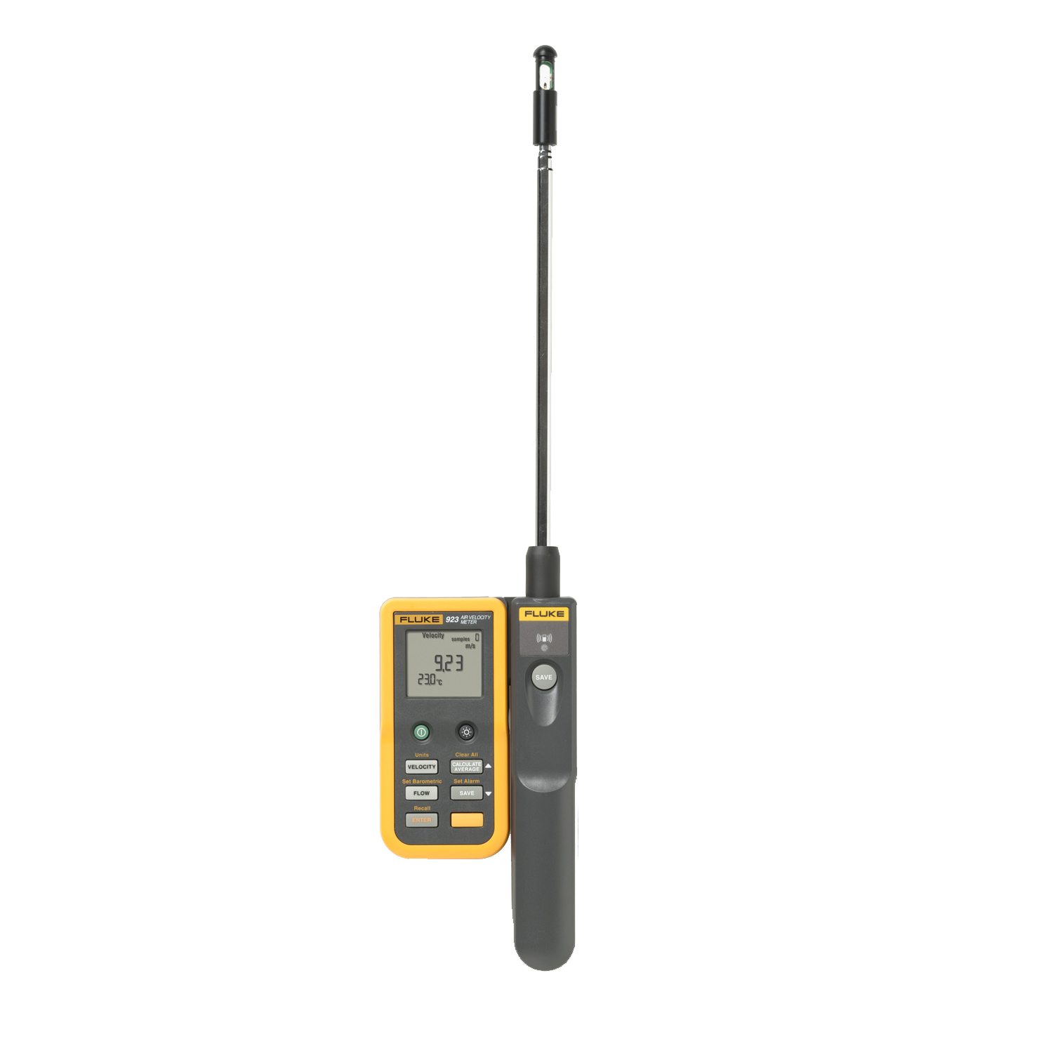 Fluke 923 熱線風速儀是一款可以分離顯示屏的風速計,顯示屏和傳感器一體時采用紅外通訊方式,當分離時采用無線通訊方式;顯示屏最遠可以距離傳感器30m仍可以準確讀數(shù),不會影響數(shù)據(jù)的實時性和測量精度。熱敏風速傳感器探桿可伸縮,傳感器上的保存按鈕方便隨時保存測量數(shù)據(jù),支持保存數(shù)據(jù)的平均值運算;只要輸入風管的尺寸,便可直接顯示風量;可以設(shè)定風速報警值,達到報警界限后蜂鳴震動報警;為了更準確的測量,儀表還支持大氣壓的輸入。
